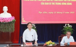 Ngày 22/9, tại Bạc Liêu, Đoàn kiểm tra của Ban Bí thư Trung ương Đảng đã tổ chức Hội nghị thông qua dự thảo Báo cáo kết quả kiểm tra đối với Ban Thường vụ...