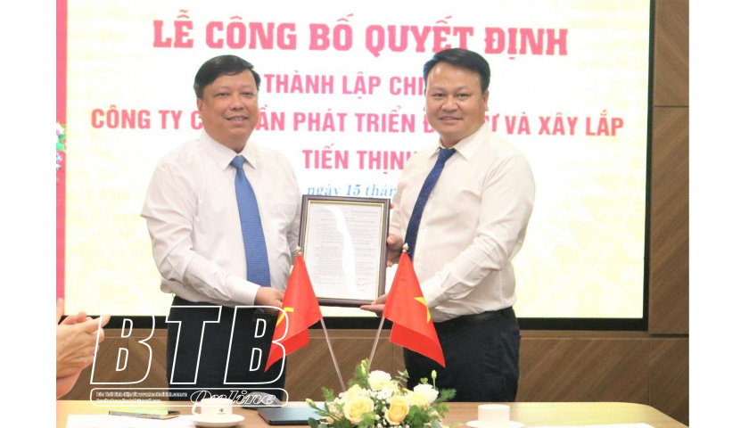 Chiều ngày 15/9, Đảng ủy Khối Doanh nghiệp tỉnh tổ chức lễ công bố quyết định thành lập Chi bộ Công ty Cổ phần Phát triển đầu tư và Xây lắp Tiến Thịnh (khu công nghiệp Phúc Khánh, thành phố Thái Bình).