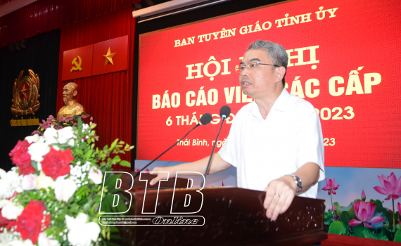 Sáng ngày 15/6, Ban Tuyên giáo Tỉnh ủy tổ chức hội nghị báo cáo viên các cấp 6 tháng đầu năm 2023. Dự và trực tiếp thông tin tại hội nghị có các đồng chí: Phạm Đồng Thụy, Ủy viên Ban Thường vụ, Trưởng ban Tuyên giáo Tỉnh ủy; PGS.TS Vũ Thị Phương Hậu, Viện trưởng Viện Văn hóa và Phát triển, Học viện Chính trị Quốc gia Hồ Chí Minh.
