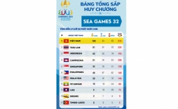 Đoàn Thể thao Việt Nam đã có được 124 huy chương Vàng để nắm chắc ngôi đầu bảng tổng sắp huy chương SEA Games 32, và đang hơn Thái Lan đến 30 HCV.