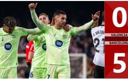 Kết quả bàn thắng Valencia vs Barcelona: 0-5 (Tứ kết Cúp nhà Vua Tây Ban Nha 2024/25)