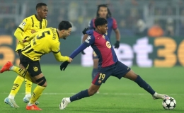 Tiền đạo Lamine Yamal góp một kiến tạo giúp Barca thắng 3-2 trên sân Dortmund, ở lượt sáu vòng bảng Champions League.