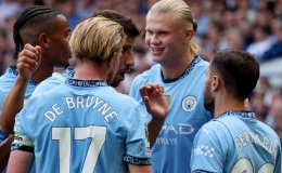 Tiền đạo Erling Haaland mở tỷ số khi Man City thắng Chelsea 2-0 ở vòng một Ngoại hạng Anh tối 18/8.