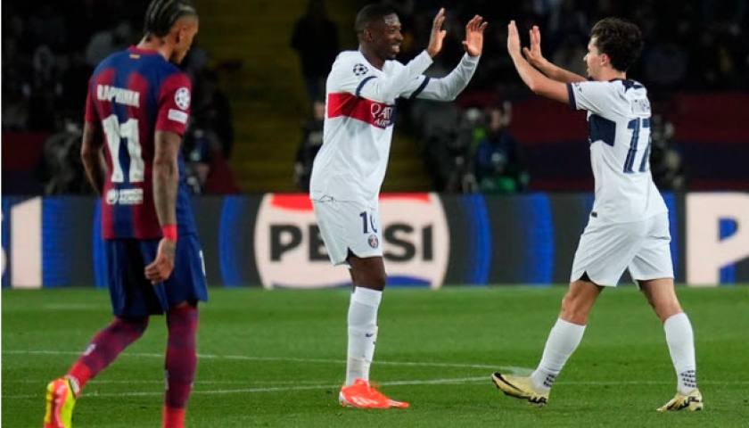 Tiền vệ Raphinha lập cú đúp, giúp Barca thắng ngược chủ nhà PSG 3-2 ở lượt đi tứ kết Champions League.