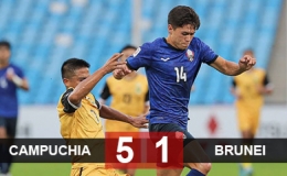 Bị đối thủ dẫn trước nhưng ĐT Campuchia vẫn lội ngược dòng và thắng đậm ĐT Brunei với tỉ số 5-1.
