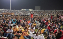 Chụp ảnh selfies từ khán đài hay ngồi trên sân cỏ, hàng nghìn lao động nhập cư hào hứng xem trận khai mạc World Cup từ một sân vận động ở Doha.