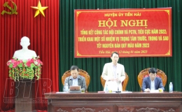 Sáng ngày 12/1, Huyện ủy Tiền Hải tổ chức hội nghị tổng kết công tác nội chính và phòng, chống tham nhũng, tiêu cực năm 2022, triển khai nhiệm vụ công tác...