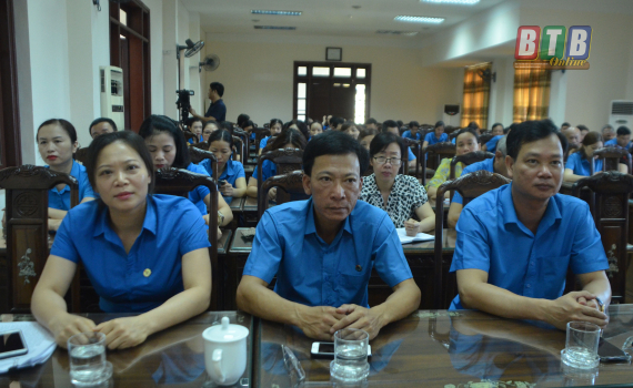 Sáng ngày 26/6, Ban Thường vụ Liên đoàn Lao động tỉnh tổ chức hội nghị quán triệt, triển khai thực hiện các nghị quyết, chỉ thị, kết luận, quy định của Bộ Chính trị, Ban Bí thư (khóa XII); Nghị quyết số 09-NQ/TU của Ban Thường vụ Tỉnh ủy (Khóa XIX).