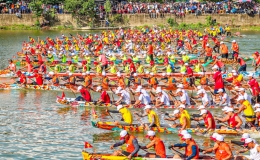 Vạn người đội nắng dự lễ hội đua thuyền trên sông Kiến Giang mừng Tết Độc lập