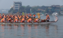 Sáng 9/4, tại hồ Công viên Văn Lang (thành phố Việt Trì, tỉnh Phú Thọ), Ban Tổ chức Giỗ Tổ Hùng Vương tổ chức Hội thi Bơi chải mở rộng năm 2022.