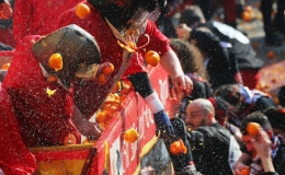 Mặc dù Italy đang là tâm dịch Covid-19 lớn nhất châu Âu, lễ hội ném cam thường niên ở thị trấn Irvea (Italy) vẫn thu hút 15.000 người tham gia.