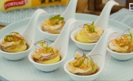 Khác với đậu hũ thường, đậu hũ trứng có vị béo ngậy cùng màu vàng tươi bắt mắt. Nguyên liệu trở nên đậm đà hơn khi kết hợp với tôm và tỏi phi.