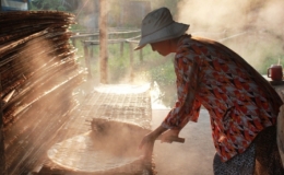 Hủ tiếu là món ăn bình dân, giá thành rẻ, nhưng công đoạn làm ra từng sợi hủ tiếu lại tốn nhiều thời gian và công sức.