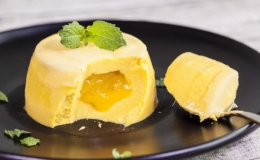 Bánh pudding xoài với phần nhân xoài vàng sóng sánh bên trong, chỉ cần nghĩ thôi cũng đã thấy thèm rồi.