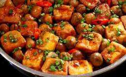Đậu phụ kho nấm rơm - món chay cho ngày hè