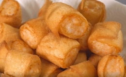 Những lát bánh mì sandwich cuộn tôm bóc nõn, sau đó chiên vàng giòn, là mòn ăn nhẹ hấp dẫn để nhâm nhi cuối tuần.