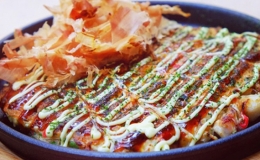 Okonomiyaki là loại bánh xèo truyền thống của người Nhật. Nguyên liệu chính bao gồm bột mì, mì yakisoba, sốt okonomi, cải bắp...