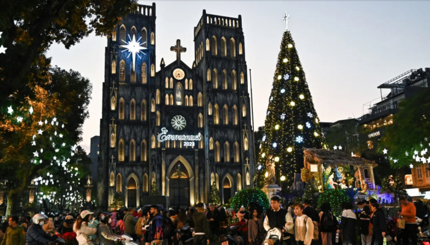Miền bắc Việt Nam đón Giáng sinh trong không khí lạnh giá còn tại Nhật Bản hàng trăm người hóa trang thành ông già Noel tạo dáng chụp ảnh gần ga Tokyo.