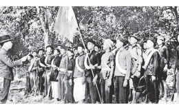 Người cầm cờ trong buổi lễ thành lập Đội Việt Nam tuyên truyền giải phóng quân