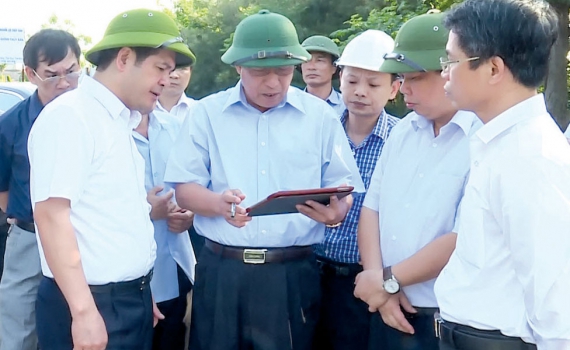 Các đồng chí lãnh đạo tỉnh kiểm tra việc triển khai xây dựng khu công nghiệp Thụy Trường