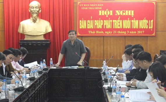 Hội nghị bàn về giải pháp phát triển nuôi tôm nước lợ do UBND tỉnh tổ chức sáng ngày 21/3 tại huyện Tiền Hải.