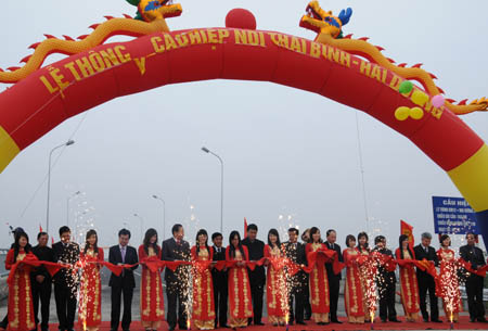 Sáng ngày 9/1, UBND tỉnh Thái Bình và UBND tỉnh Hải Dương tổ chức lễ thông xe cầu Hiệp nối liền Thái Bình- Hải Dương.