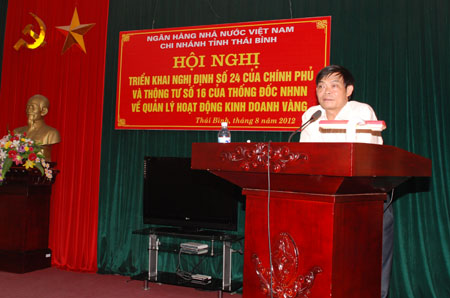 Ngân hàng Nhà nước Chi nhánh Thái BìnhTriển khai Nghị định 24/2012/NĐ-CP, Thông tư 16/2012/TT-NHNN về quản lý hoạt động kinh doanh vàng