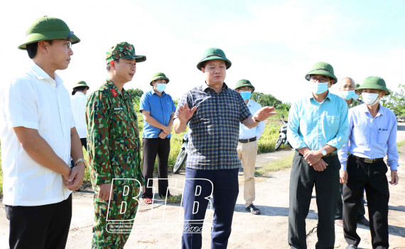 Đồng chí Nguyễn Quang Hưng, Phó Chủ tịch thường trực UBND tỉnh kiểm tra, chỉ đạo công tác khắc phục ảnh hưởng của bão số 7 tại huyện Thái Thụy