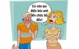 Thấy vợ ôm đầu nhăn nhó, chồng lo lắng hỏi: