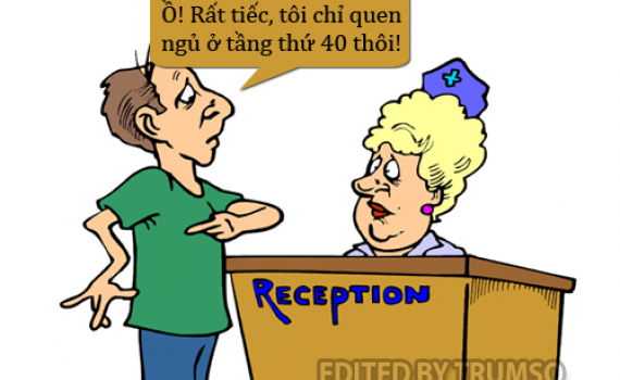 Một du khách vào khách sạn hỏi giá tiền thuê phòng. Nhân viên lễ tân mở sổ nói: