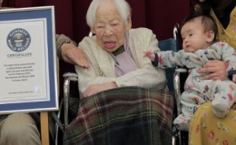 Bà Misao Okawa, 114 tuổi, người Nhật Bản, được tổ chức Kỷ lục Thế giới Guinness xác nhận là phụ nữ già nhất thế giới ngày 01/03/2013.