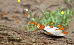 Đàn bướm bay lượn và dạo quanh đầu rùa để uống những giọt nước mắt rùa, một trong các nguồn cung cấp natri tự nhiên. Hiện tượng đặc biệt này được...