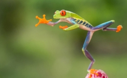Loài ếch xanh mắt đỏ ở Trung Mỹ có màu sắc sặc sỡ giúp ngụy trang giữa các loại cây cỏ, đặc biệt chúng còn có khả năng nhảy cao đáng kinh ngạc trong...