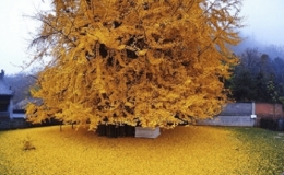 Choáng ngợp với cây cổ thụ 1.400 tuổi trải thảm lá vàng phủ kín sân