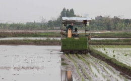 Máy cấy trên những cánh đồng thửa lớn