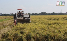Thái Thụy thu hoạch 90% diện tích lúa mùa