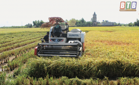 Cùng với nông dân các địa phương trong tỉnh, nông dân huyện Thái Thụy đang tích cực huy động nhân lực, máy móc để đẩy nhanh tiến độ thu hoạch lúa xuân và chuẩn bị tốt cho sản xuất vụ lúa mùa.