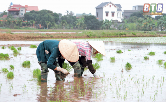 Thái Thụy đẩy nhanh tiến độ gieo cấy lúa xuân