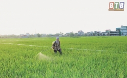Để bảo vệ 10.216ha lúa xuân đang trong giai đoạn đứng cái đến phân hóa đòng, huyện Tiền Hải đã phát động chiến dịch thực hiện phòng trừ sâu bệnh, trong đó trừ sâu cuốn lá nhỏ đối với 100% diện tích và rầy...