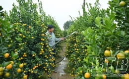 Ở xã Đông Thọ (thành phố Thái Bình), nhiều gia đình hội viên phụ nữ trở nên khá giả nhờ trồng quất tết.