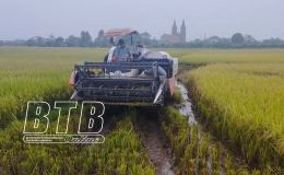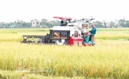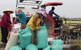 Kiến Xương: Đẩy nhanh tiến độ thu hoạch lúa mùa