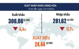 Theo số liệu Tổng cục Thống kê vừa công bố sáng 29/11, tính từ đầu năm đến hết ngày 15/11/2023, tổng kim ngạch xuất, nhập khẩu hàng hóa sơ bộ đạt 587,68...