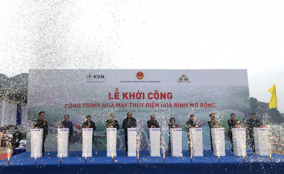 Sáng nay, Tập đoàn Điện lực Việt nam, UBQLVNN tại DN, Binh đoàn 12 và liên danh các nhà thầu đã tiến hành khởi công công trình Nhà máy thủy điện Hòa Bình mở rộng.
