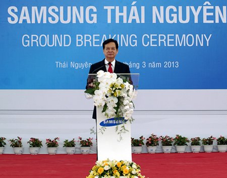 Sáng 25/3, tại Khu công nghiệp Yên Bình, huyện Phổ Yên, tỉnh Thái Nguyên, Thủ tướng Chính phủ Nguyễn Tấn Dũng đã tới dự và phát biểu tại Lễ khởi công xây dựng Nhà máy Samsung Thái Nguyên.