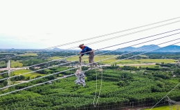 Nắng như đổ lửa, công nhân treo mình giữa lưng trời kéo dây điện 500kV