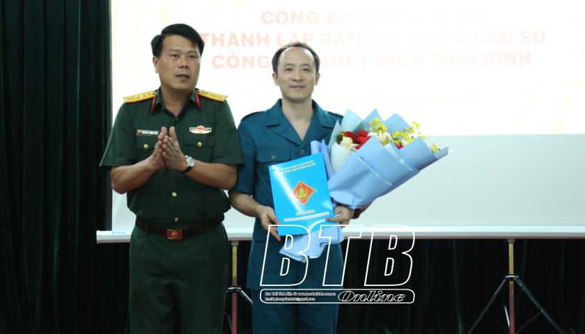 Chiều ngày 26/5, Bộ CHQS tỉnh tổ chức công bố quyết định thành lập Ban CHQS Công ty Nhiệt điện Thái Bình.