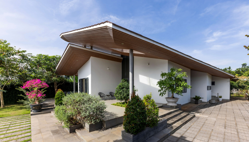 Nhà vườn 260m2 với hệ mái 3 lớp xòe rộng chống nóng