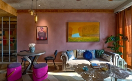 Với màu sơn tường nổi bật, trưng bày những món nội thất do gia chủ sưu tầm từ nhiều nơi, khiến căn hộ giống một studio nghệ thuật.