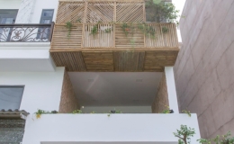 Ngôi nhà phố được gia chủ sử dụng tre để trang trí, đồng thời làm đệm cản nắng, giàn leo cho cây xanh.