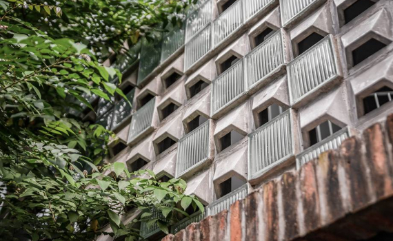 Nhờ sự kết hợp giữa bê tông và những khoảng không xanh mướt, ngôi nhà như ẩn mình trong một rừng cây giữa lòng thành phố.